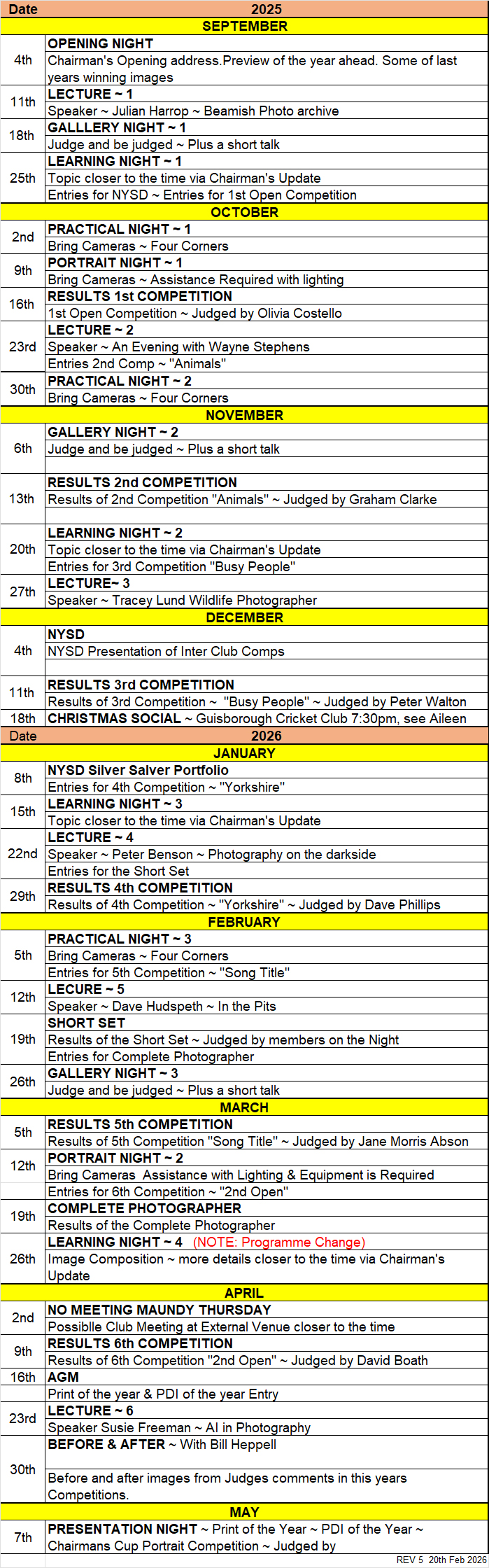 2025 – 2026 Season Programme